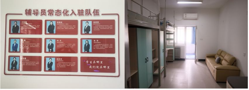 在人员配置方面,学校推动学工队伍全面进驻学生公寓。目前十三栋学生公寓均安排4-6名辅导员入住,学生处干部、各学院党委副书记等学生工作骨干也深入一线,全面负责学生的思想政治教育、日常事务管理、行为习惯养成及突发事件处置。社区内设有四个辅导员工作室,分别聚焦党建引领、职业生涯规划、心理健康教育和就业创业指导,为学生提供专业化、精准化服务。