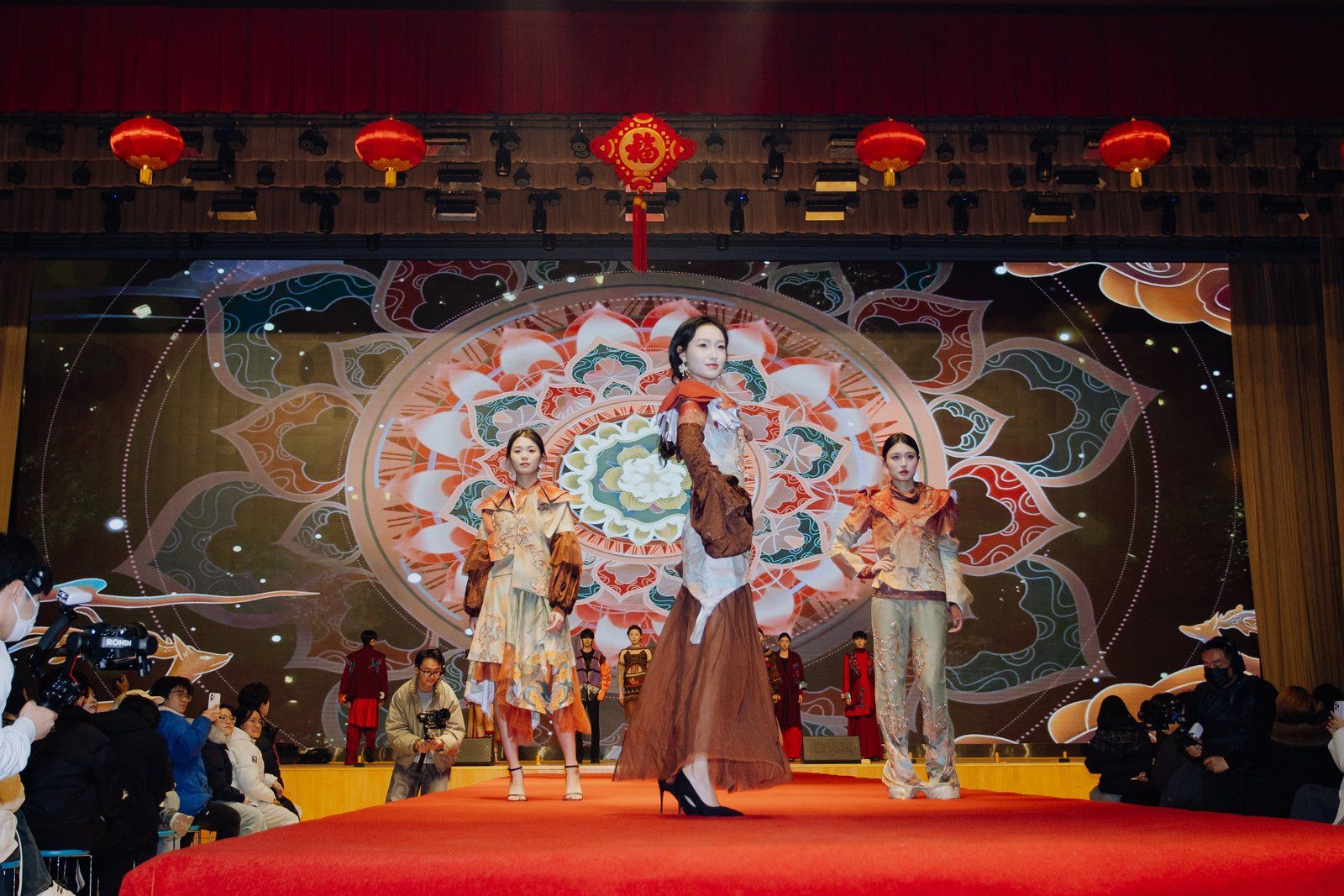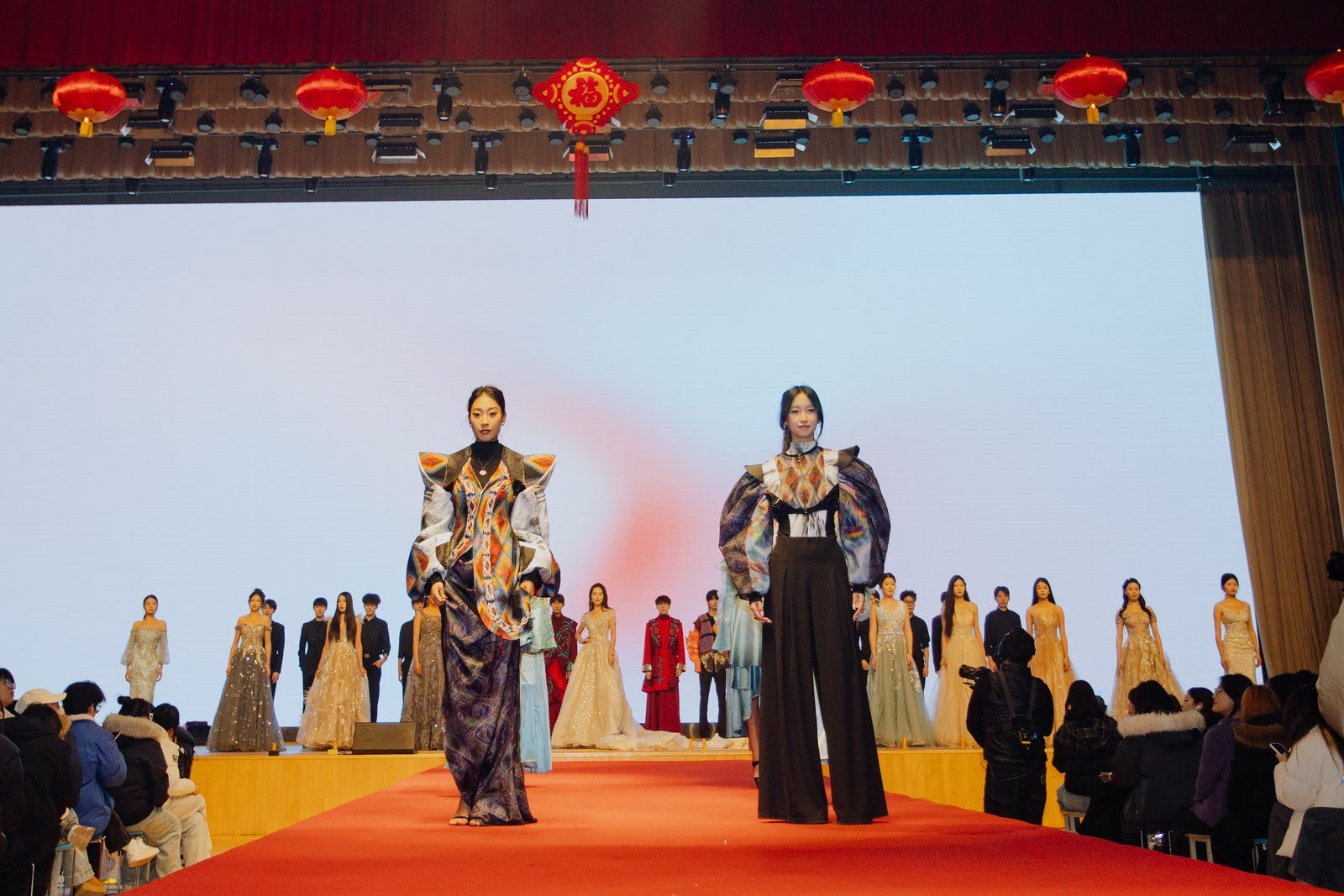 走秀《星河・耀丝路》舞台设计独具匠心,模特身着融合丝路文化元素与现代时尚剪裁的服饰,在变幻的灯光下如星河般璀璨流动,将千年丝路的璀璨文明与当代设计巧思完美融合,每一步都似在演绎一幅流动的历史画卷,尽显时尚底蕴。