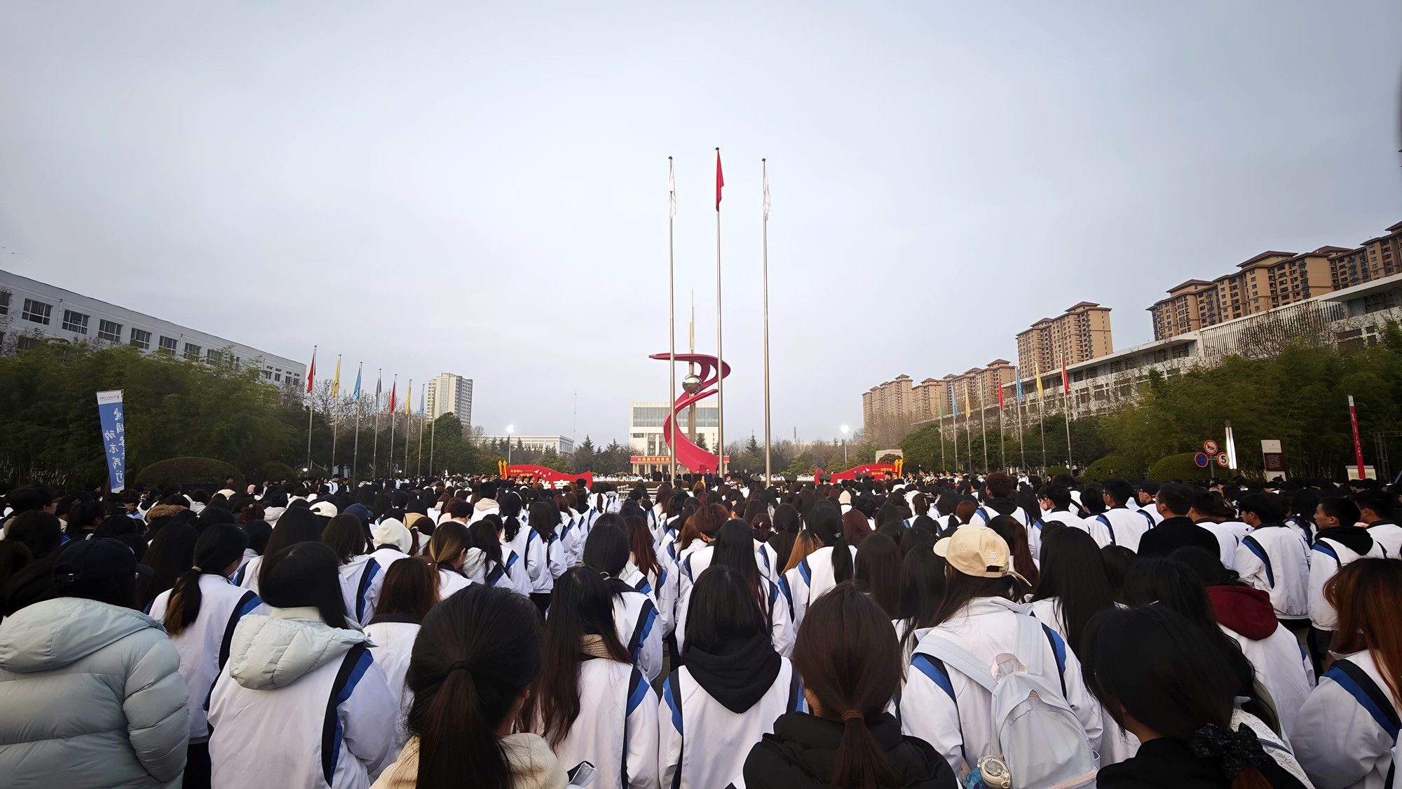 陕服新闻网讯(李文斌)3月16日清晨,我校在和谐广场举行3月份升国旗仪式。学校董事长吕明、校长姜寿山、党委书记王岗及在校校级领导、师生代表万余人齐聚广场,以国旗为誓,吹响新学期奋进的号角。